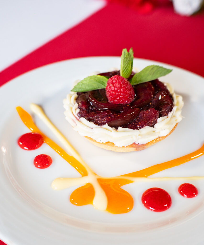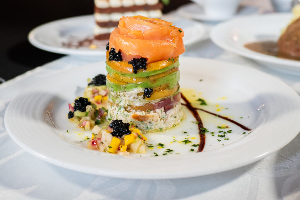 El Menú de Año Nuevo 2025-2026 inicia con un gravlax de salmón perfumado al Pernod, seguido de una crema de morillas perfumada al cognac, dos preparaciones ligadas al lujo gastronómico y a la idea de avanzar sin retroceder. Como plato fuerte se sirve un filete de res con salsa a las tres pimientas sobre puré de papa rústica y terrina de vegetales, y el final dulce llega con un brownie con esencia de tiramisú y una compota de queso mascarpone con frutos rojos, pensados como símbolos de dulzura y renovación.