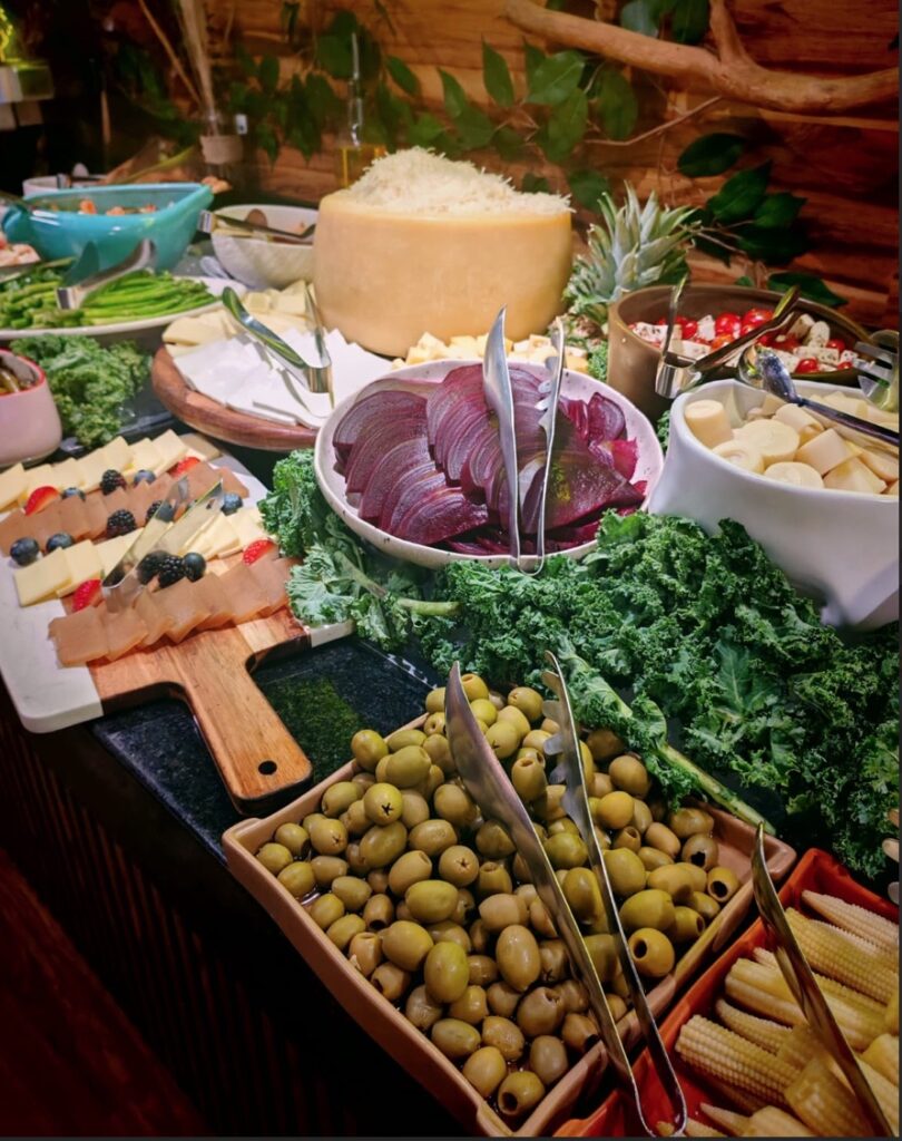 • El Complemento Ideal: Un buffet de alta gama que incluye pastas, arroces, quesos finos y el tradicional Pão de queijo (pan de queso).