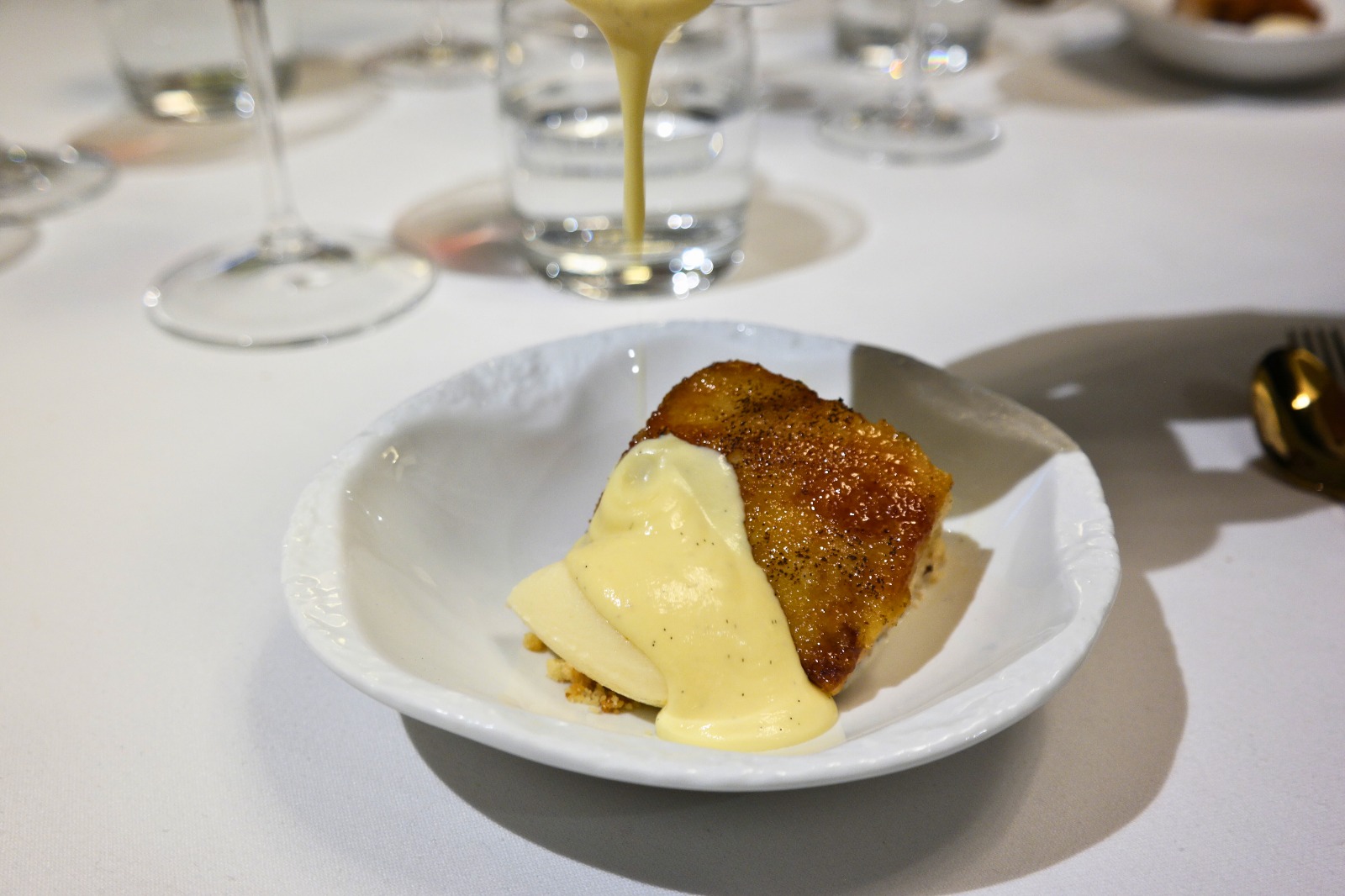 En fin, Pablo Palomo hace un recorrido por los sabores de España con mucha maestría, mucha técnica, belleza en el montaje y la loza, pero sobre todo con sabores francos de buena materia prima bien trabajada. Ya en este punto, se antoja sí o sí un tinto, un blanco, un rosado y un cava para brindar, y aquí Alinna lo hace muy bien también: la cava corre de la mano de la sommelier Elizabeth Cruz, que importa directamente vinos muy adecuados para el menú, no los vinos de las etiquetas súper caras, realmente cosas bien elegidas, de denominaciones de origen no tan conocidas, aunque desde luego también tiene clásicos.